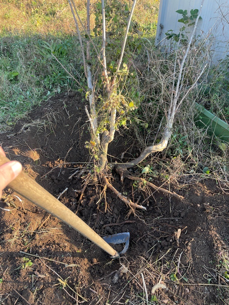 今回、はじめてトラクターで蜂場の前の畑を耕うんした。秋のコスモス、耕うんせずに種まきしたら雑草にやられて壊滅してしまったので、来春の菜の花のためにもしっかりと耕うんして雑草を処理してから種まきしたい。22馬力のトラクターは、固くなった土でも掘り起こしてくれるので大変助かった。ついでに、ずっとやりたかった蜂箱の後ろの木を人力で伐根した。